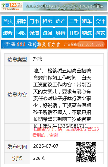 地点:松韵城五期高鑫招聘育婴师保姆工作时间:白天工资面议工作内容:带刚百天的女婴儿,要求有耐心有责任心对孩子好就行活少事少,好说话,工资高有假期孩子听话不闹人,不累只招长期希望带到两三岁或者更长!崔先生13354581711 【电话咨询时,请一定说明在伊春信息网看到的,谢谢!】 |