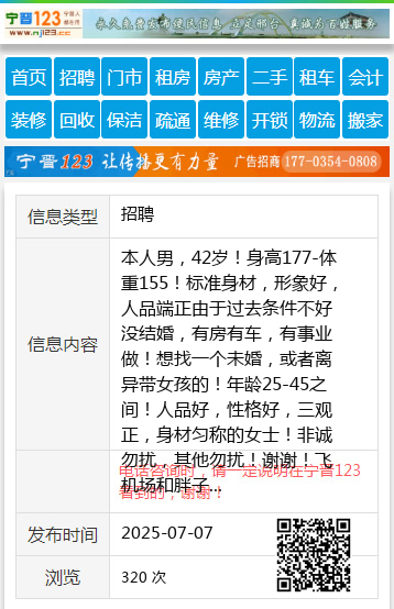 本人男,42岁!身高177-体重155!标准身材,形象好,人品端正由于过去条件不好没结婚,有房有车,有事业做!想找一个未婚,或者离异带女孩的!年龄25-45之间!人品好,性格好,三观正,身材匀称的女士!非诚勿扰,其他勿扰!谢谢!飞机场和胖子让行!吴先生16645833339 【电话咨询时,请一定说明在伊春信息网看到的,谢谢!】 |