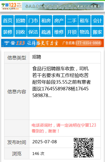食品行招聘跟车收款,司机若干名要求有工作经验吃苦耐劳年龄段35.55之前有意者面议17645589878杨17645589878 【电话咨询时,请一定说明在伊春信息网看到的,谢谢!】 |