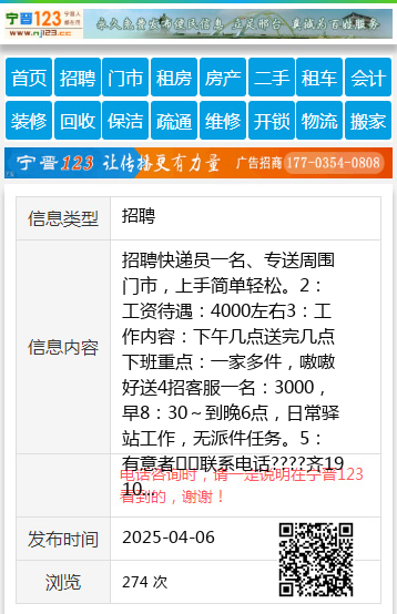 招聘快递员一名、专送周围门市,上手简单轻松。2:工资待遇:4000左右3:工作内容:下午几点送完几点下班重点:一家多件,嗷嗷好送4招客服一名:3000,早8:30~到晚6点,日常驿站工作,无派件任务。5:有意者⬇️联系电话????齐19104581788 【电话咨询时,请一定说明在伊春信息网看到的,谢谢!】 |