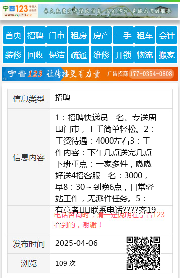 1:招聘快递员一名、专送周围门市,上手简单轻松。2:工资待遇:4000左右3:工作内容:下午几点送完几点下班重点:一家多件,嗷嗷好送4招客服一名:3000,早8:30~到晚6点,日常驿站工作,无派件任务。5:有意者⬇️联系电话????齐19104581788 【电话咨询时,请一定说明在伊春信息网看到的,谢谢!】 |