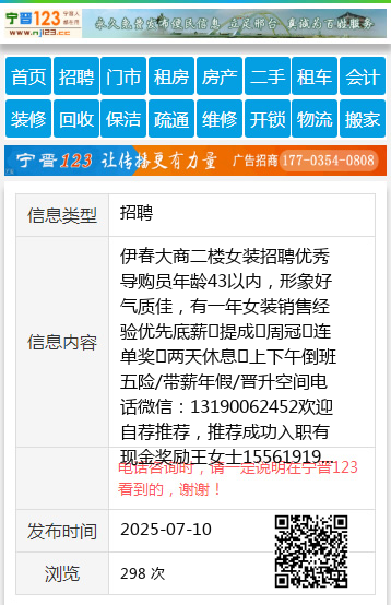 伊春大商二楼女装招聘优秀导购员年龄43以内,形象好气质佳,有一年女装销售经验优先底薪➕提成➕周冠➕连单奖➕两天休息➕上下午倒班五险/带薪年假/晋升空间电话微信:13190062452欢迎自荐推荐,推荐成功入职有现金奖励王女士15561919868 【电话咨询时,请一定说明在伊春信息网看到的,谢谢!】 |
