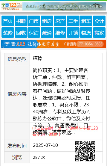 岗位职责:1、主要处理客诉工单,仲裁,留言回复,协助理赔等。2、耐心倾听客户问题,做好问题及时传达,处理结果及时反馈。任职要求:1、男女不限,23-40周岁,专科及以上学历2、熟练办公软件,微信及支付宝等。3、普通话标准、口齿清晰、语言表达条理清晰4、具有较强的亲和力、责任感、沟通能力和应变能力。刘女士17758893007 【电话咨询时,请一定说明在伊春信息网看到的,谢谢!】 |