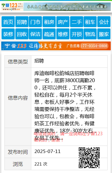 库迪咖啡松韵城店招聘咖啡师一名,底薪3800➕满勤200,还可以供住,工作不累,轻松自在,每月2个半天休息,老板人好事少,工作环境需要保持干净整洁,无经验也可以,包教会,有咖啡奶茶工作经验者优先,有健康证优先,18岁-30岁左右,女员工优先,联系电话19845000566.19845000566 【电话咨询时,请一定说明在伊春信息网看到的,谢谢!】 |