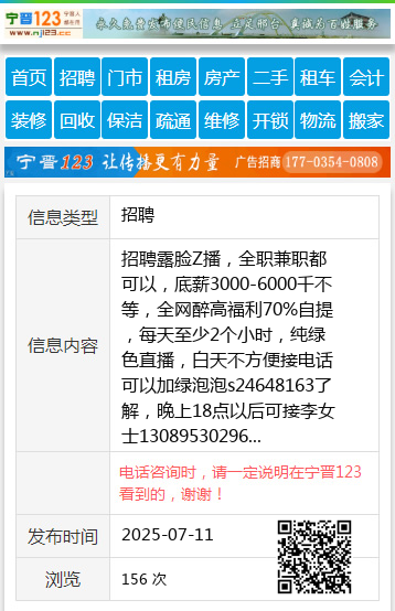 招聘露脸Z播,全职兼职都可以,底薪3000-6000千不等,全网醉高福利70%自提,每天至少2个小时,纯绿色直播,白天不方便接电话可以加绿泡泡s24648163了解,晚上18点以后可接李女士13089530296