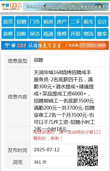 天润华城168烧烤招聘成手服务员-2名底薪四千五,满勤300元+酒水提成+储值提成+菜品提成工资6000+,招聘刷碗工一名底薪3500元满勤200元一共3700元-招聘穿串工2名一个月3500元-也可以干几件工资-招聘小时工2名一小时18元-有寝室乌马河方向有通勤车有工作经验的来曹13845838882 【电话咨询时,请一定说明在伊春信息网看到的,谢谢!】 |