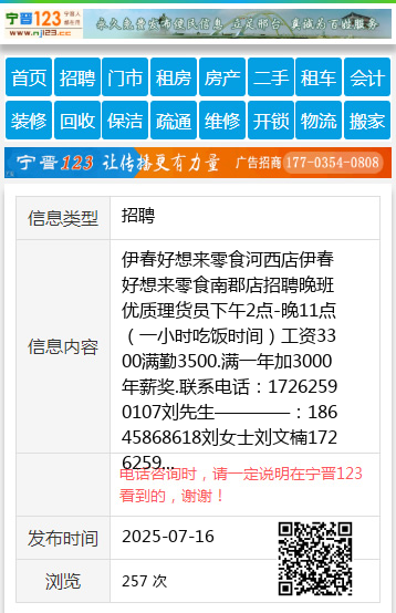 伊春好想来零食河西店伊春好想来零食南郡店招聘晚班优质理货员下午2点-晚11点(一小时吃饭时间)工资3300满勤3500.满一年加3000年薪奖.联系电话:17262590107刘先生————:18645868618刘女士刘文楠17262590107 【电话咨询时,请一定说明在伊春信息网看到的,谢谢!】 |