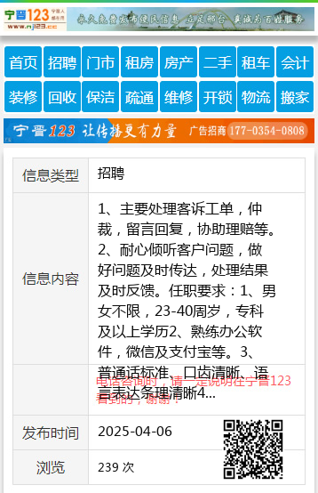 1、主要处理客诉工单,仲裁,留言回复,协助理赔等。2、耐心倾听客户问题,做好问题及时传达,处理结果及时反馈。任职要求:1、男女不限,23-40周岁,专科及以上学历2、熟练办公软件,微信及支付宝等。3、普通话标准、口齿清晰、语言表达条理清晰4、具有较强的亲和力、责任感、沟通能力和应变能力。5、薪资待遇:转正基本薪资:3200元(底薪+满勤+交通补助+保险补助)+任务外提成=月综合工资4000-6000元,根据个人服务能力,能力越强赚的越多。职位福利:年底双薪、大牛带队、定期团建、绩效奖金、加班补助、全勤奖、试用期提前转正、优秀员工奖金职位亮点:成手可居家办公,朝阳行业,长期稳定。吴先生18545486667 【电话咨询时,请一定说明在伊春信息网看到的,谢谢!】 |