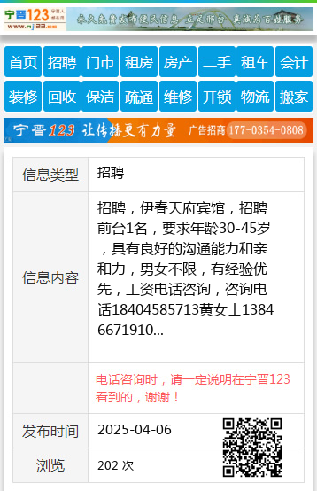 招聘,伊春天府宾馆,招聘前台1名,要求年龄30-45岁,具有良好的沟通能力和亲和力,男女不限,有经验优先,工资电话咨询,咨询电话18404585713黄女士13846671910 【电话咨询时,请一定说明在伊春信息网看到的,谢谢!】 |