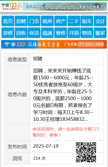 招聘,来来来开始赚钱了底薪1500~6000元,年龄25--50优秀者放宽至60周岁,大专及本科学历,年龄在25-50周岁的,底薪2500~10000元名额有限,抓紧报名了学习时间:每天上午8.30--10.30王经理18345883229 【电话咨询时,请一定说明在伊春信息网看到的,谢谢!】 |