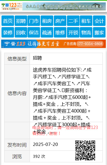 途虎养车招聘岗位如下:↗成手汽修工↖↗汽修学徒工↖↗成手汽车美容工↖↗汽车美容学徒工↖✅薪资福利:月薪:↗成手汽修工6000起+提成+奖金,上不封顶。↖↗成手汽车美容工4000起+提成+奖金,上不封顶。↖↗汽修学徒工3000起+提成+奖金,上不封顶。薪资随技术涨。↖↗汽车美容学徒工2500起+奖金+提成,上不封顶。薪资随技术涨。↖↗以上岗位均缴纳五险每月准时发薪。外地工可供住宿和午饭↖✅成手汽修工工作内容:配合店内经营项目,换轮胎机油等快速修理没有太难的工作项目✅学徒工工作内容:跟着老师傅学修保养车,打下手、整理车间,上手快。✅成手汽车美容工工作内容:配合店内洗车项目工作✅汽车美容学徒工工作内容:跟着老师傅学修保养车,打下手、整理车间。✅以上内容均可来店考察✅要求:爱汽修,肯吃苦,学习能力强,有经验有驾照优先。✅发展:专业培训+超多实战,晋升空间大,轻松变汽修大神!????联系电话:13796513553????工作地址:伊美区青山西大街转盘道旁升辉广场想入行汽修却缺机会?平台给你了,你还在等菜么,快来加入我们吧。途虎养车带你起飞!谢13796513553 【电话咨询时,请一定说明在伊春信息网看到的,谢谢!】 |