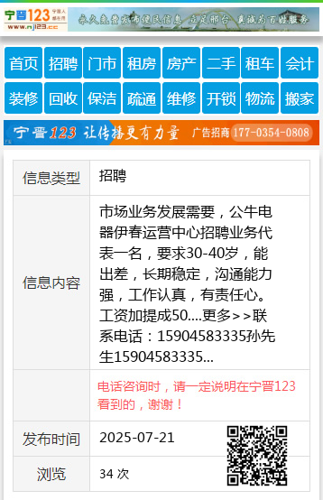 | 防骗提醒: | 伊春信息网(www.yichunba.cn)提醒您:手工活、网络兼职、刷单,都是骗子!凡以各种名义收取费用的都是骗子!找工作是往兜里挣钱,让你往外掏钱的都是骗子!异地招聘请提高警惕,谨防诈骗! |