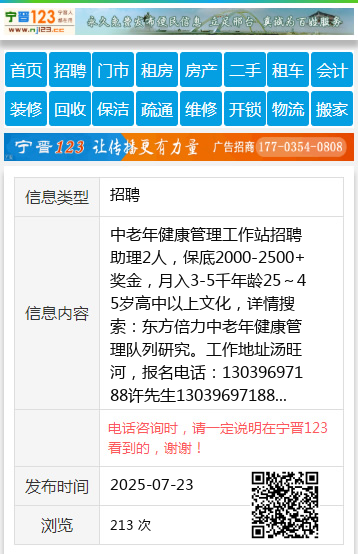 中老年健康管理工作站招聘助理2人,保底2000-2500+奖金,月入3-5千年龄25~45岁高中以上文化,详情搜索:东方倍力中老年健康管理队列研究。工作地址汤旺河,报名电话:13039697188许先生13039697188 【电话咨询时,请一定说明在伊春信息网看到的,谢谢!】 |