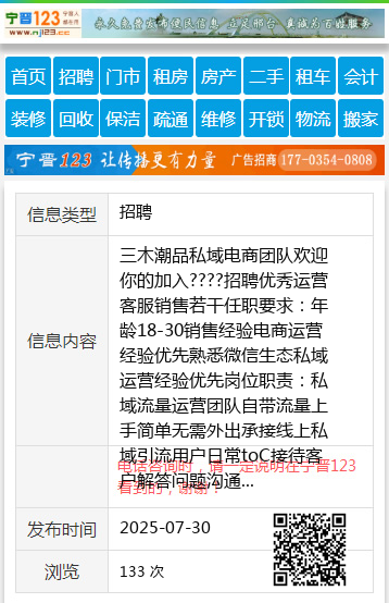 三木潮品私域电商团队欢迎你的加入????招聘优秀运营客服销售若干任职要求:年龄18-30销售经验电商运营经验优先熟悉微信生态私域运营经验优先岗位职责:私域流量运营团队自带流量上手简单无需外出承接线上私域引流用户日常toC接待客户解答问题沟通负责小程序店铺及朋友圈运营有效提升用户转化复购率GMV及领导交代的其他事物带薪试用期7天业务能力上手快可提前转正底薪➕提成➕绩效➕奖金综合工资4000-8000+工作时间:11:00-22:00联系电话:13382153336王先生13945882944 【电话咨询时,请一定说明在伊春信息网看到的,谢谢!】 |