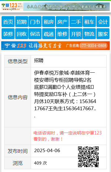 | 防骗提醒: | 伊春信息网(www.yichunba.cn)提醒您:手工活、网络兼职、刷单,都是骗子!凡以各种名义收取费用的都是骗子!找工作是往兜里挣钱,让你往外掏钱的都是骗子!异地招聘请提高警惕,谨防诈骗! |