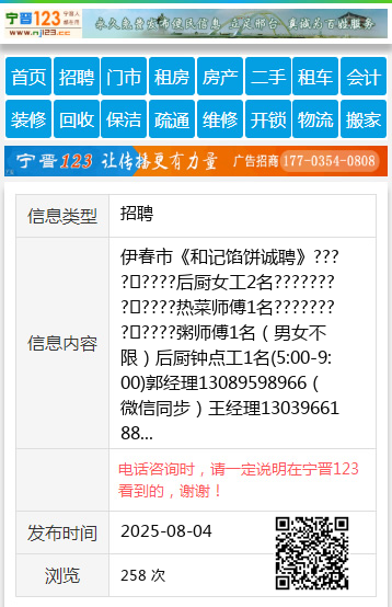 伊春市《和记馅饼诚聘》????????后厨女工2名????????????热菜师傅1名????????????粥师傅1名(男女不限)后厨钟点工1名(5:00-9:00)郭经理13089598966(微信同步)王经理13039661889(微信同步)王13039661889 【电话咨询时,请一定说明在伊春信息网看到的,谢谢!】 |