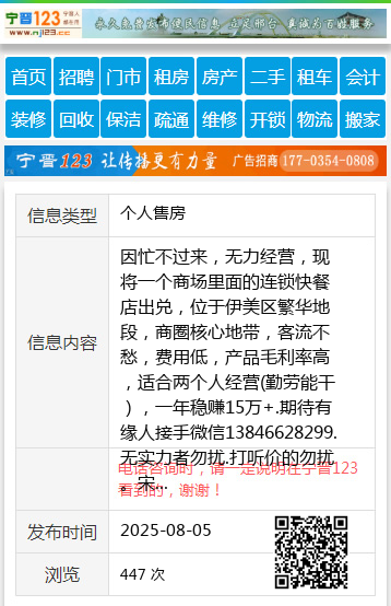 因忙不过来,无力经营,现将一个商场里面的连锁快餐店出兑,位于伊美区繁华地段,商圈核心地带,客流不愁,费用低,产品毛利率高,适合两个人经营(勤劳能干),一年稳赚15万+.期待有缘人接手微信13846628299.无实力者勿扰.打听价的勿扰。宋13846628299 【电话咨询时,请一定说明在伊春信息网看到的,谢谢!】 |