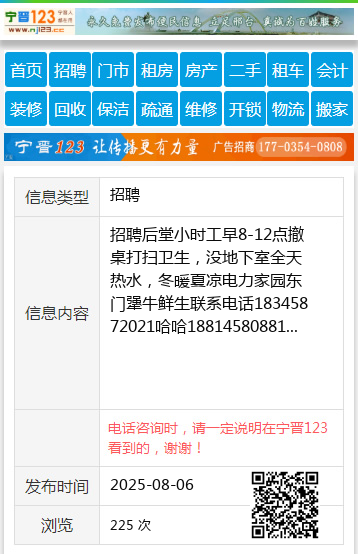 招聘后堂小时工早8-12点撤桌打扫卫生,没地下室全天热水,冬暖夏凉电力家园东门犟牛鲜生联系电话18345872021哈哈18814580881 【电话咨询时,请一定说明在伊春信息网看到的,谢谢!】 |