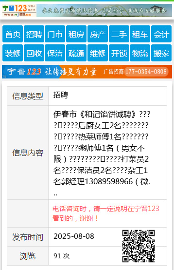 伊春市《和记馅饼诚聘》????????后厨女工2名????????????热菜师傅1名????????????粥师傅1名(男女不限)????????????打菜员2名????保洁员2名????杂工1名郭经理13089598966(微信同步)王经理13039661889(微信同步)郭经理13089598966 【电话咨询时,请一定说明在伊春信息网看到的,谢谢!】 |