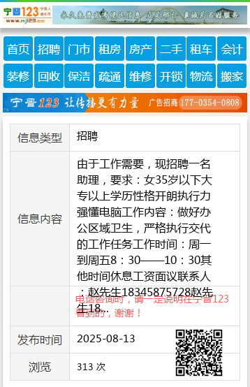 由于工作需要,现招聘一名助理,要求:女35岁以下大专以上学历性格开朗执行力强懂电脑工作内容:做好办公区域卫生,严格执行交代的工作任务工作时间:周一到周五8:30——10:30其他时间休息工资面议联系人:赵先生18345875728赵先生18345875728 【电话咨询时,请一定说明在伊春信息网看到的,谢谢!】 |
