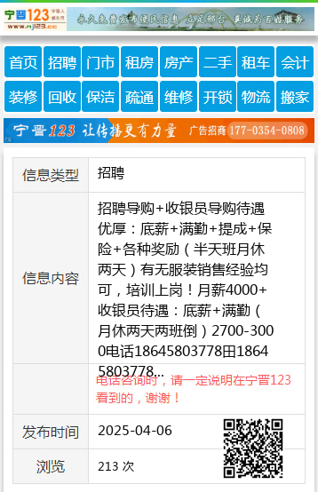 招聘导购+收银员导购待遇优厚:底薪+满勤+提成+保险+各种奖励(半天班月休两天)有无服装销售经验均可,培训上岗!月薪4000+收银员待遇:底薪+满勤(月休两天两班倒)2700-3000电话18645803778田18645803778 【电话咨询时,请一定说明在伊春信息网看到的,谢谢!】 |