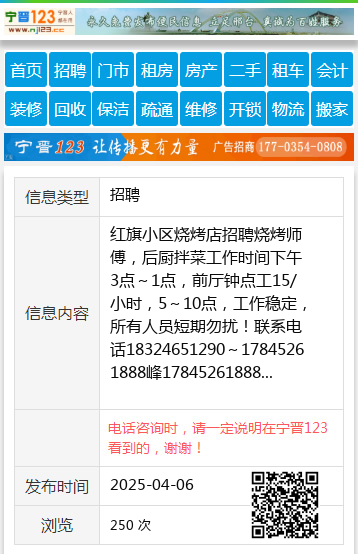 红旗小区烧烤店招聘烧烤师傅,后厨拌菜工作时间下午3点~1点,前厅钟点工15/小时,5~10点,工作稳定,所有人员短期勿扰!联系电话18324651290~17845261888峰17845261888 【电话咨询时,请一定说明在伊春信息网看到的,谢谢!】 |