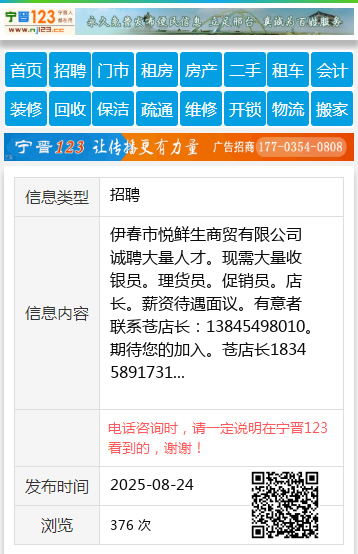伊春市悦鲜生商贸有限公司诚聘大量人才。现需大量收银员。理货员。促销员。店长。薪资待遇面议。有意者联系苍店长:13845498010。期待您的加入。苍店长18345891731 【电话咨询时,请一定说明在伊春信息网看到的,谢谢!】 |
