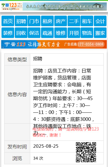 招聘:店员工作内容:日常维护顾客,货品管理,店面卫生应聘要求:会电脑,有一定的沟通能力,长期(短期勿扰)年龄要求:30—45岁工作时间:上午7:30——11:00;下午1:00——4:30薪资待遇:底薪3000,其他待遇面议工作地点:铁力,双丰,伊美,翠峦,乌马河等多地同招王女士18645851000 【电话咨询时,请一定说明在伊春信息网看到的,谢谢!】 |