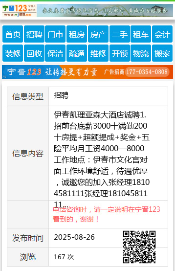 伊春凯理亚森大酒店诚聘1.招前台底薪3000十满勤200十房提+超额提成+奖金+五险平均月工资4000—8000工作地点:伊春市文化宫对面工作环境舒适,待遇优厚,诚邀您的加入张经理18104581111张经理18104581111 【电话咨询时,请一定说明在伊春信息网看到的,谢谢!】 |