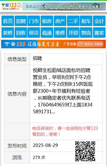 悦鲜生松韵城店面包坊招聘营业员,早班8点到下午2点晚班,下午2点到8:15供饭底薪2300+年节福利有经验者,长期稳定者优先联系电话,17604649659打上面18345891731 【电话咨询时,请一定说明在伊春信息网看到的,谢谢!】 |