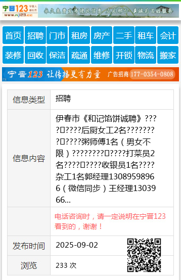伊春市《和记馅饼诚聘》????????后厨女工2名????????????粥师傅1名(男女不限)????????????打菜员2名????????收银员1名????杂工1名郭经理13089598966(微信同步)王经理13039661889(微信同步)郭经理13089598966 【电话咨询时,请一定说明在伊春信息网看到的,谢谢!】 |