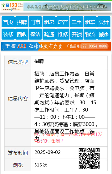 招聘:店员工作内容:日常维护顾客,货品管理,店面卫生应聘要求:会电脑,有一定的沟通能力,长期(短期勿扰)年龄要求:30—45岁工作时间:上午7:30——11:00;下午1:00——4:30薪资待遇:底薪3000,其他待遇面议工作地点:铁力,双丰,伊春,翠峦王女士18645851000 【电话咨询时,请一定说明在伊春信息网看到的,谢谢!】 |