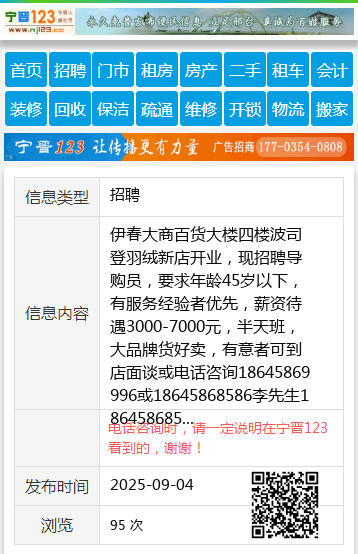 | 防骗提醒: | 伊春信息网(www.yichunba.cn)提醒您:手工活、网络兼职、刷单,都是骗子!凡以各种名义收取费用的都是骗子!找工作是往兜里挣钱,让你往外掏钱的都是骗子!异地招聘请提高警惕,谨防诈骗! |
