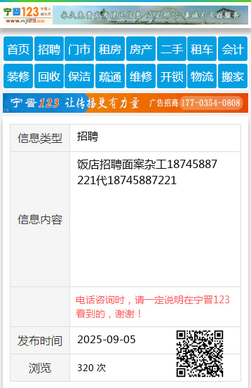 饭店招聘面案杂工18745887221代18745887221