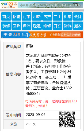 龙源北方基地招聘前台接待1名,要求女性,形象佳,善于沟通,有相关工作经验者优先。工作班制上24小时休24小时,交五险,一年后享受有薪年假,各项待遇从优,工资面议。孟女士18324688845 【电话咨询时,请一定说明在伊春信息网看到的,谢谢!】 |