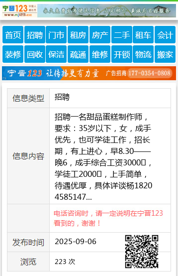 招聘一名甜品蛋糕制作师,要求:35岁以下,女,成手优先,也可学徒工作,招长期,有上进心,早8.30——晚6,成手综合工资3000➕,学徒工2000➕,上手简单,待遇优厚,具体详谈杨18204585147 【电话咨询时,请一定说明在伊春信息网看到的,谢谢!】 |