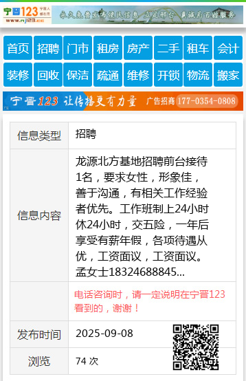 龙源北方基地招聘前台接待1名,要求女性,形象佳,善于沟通,有相关工作经验者优先。工作班制上24小时休24小时,交五险,一年后享受有薪年假,各项待遇从优,工资面议,工资面议。孟女士18324688845 【电话咨询时,请一定说明在伊春信息网看到的,谢谢!】 |