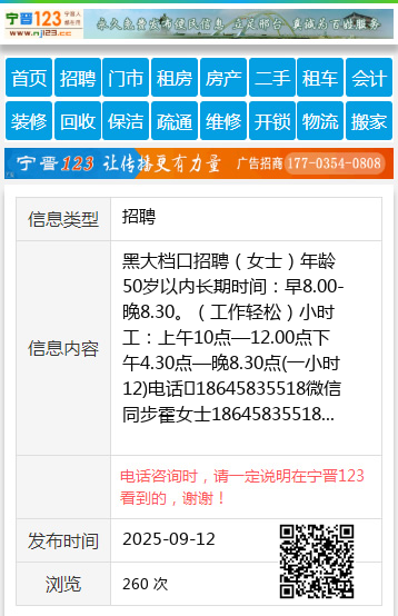 黑大档口招聘(女士)年龄50岁以内长期时间:早8.00-晚8.30。(工作轻松)小时工:上午10点—12.00点下午4.30点—晚8.30点(一小时12)电话☎18645835518微信同步霍女士18645835518 【电话咨询时,请一定说明在伊春信息网看到的,谢谢!】 |
