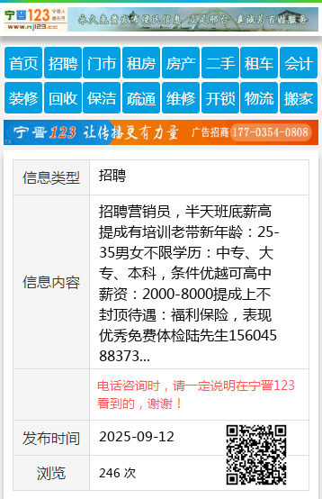 招聘营销员,半天班底薪高提成有培训老带新年龄:25-35男女不限学历:中专、大专、本科,条件优越可高中薪资:2000-8000提成上不封顶待遇:福利保险,表现优秀免费体检陆先生15604588373 【电话咨询时,请一定说明在伊春信息网看到的,谢谢!】 |