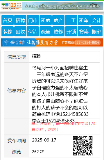 乌马河一小对面招聘住宿生二三年级家远的冬天不方便折腾的可以送来吃好住好孩子自理能力强的不太玻璃心的本人带娃佛系不限制不管制孩子自由随心不早说脏话的打人的孩子不会的题可以简单梳理电话15214585633李女士15214585633 【电话咨询时,请一定说明在伊春信息网看到的,谢谢!】 |
