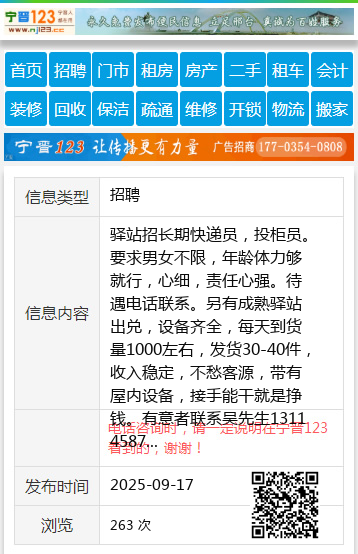 驿站招长期快递员,投柜员。要求男女不限,年龄体力够就行,心细,责任心强。待遇电话联系。另有成熟驿站出兑,设备齐全,每天到货量1000左右,发货30-40件,收入稳定,不愁客源,带有屋内设备,接手能干就是挣钱。有意者联系吴先生13114587976请联系此号码吴先生17758895804 【电话咨询时,请一定说明在伊春信息网看到的,谢谢!】 |