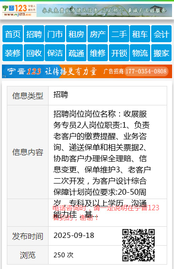 招聘岗位岗位名称:收展服务专员2人岗位职责:1、负责老客户的缴费提醒、业务咨询、递送保单和相关票据2、协助客户办理保全理赔、信息变更、保单维护3、老客户二次开发,为客户设计综合保障计划岗位要求:20-50周岁,专科及以上学历,沟通能力佳,基本电脑操作。岗位福利:代理合同,周末双休、法定假期、享受各类节日福利、方案奖励、物资奖励等岗位薪资:固定底薪+收费奖金+新单绩效+续期绩效+短期险服务奖金+复效奖金+养老补贴+年终奖+长期服务奖等。工作地点:伊美、嘉荫、铁力!面试地址:大商北农行北侧富德生命人寿六楼续期部电话/微信:杨女士13846601789杨女士13846601789 【电话咨询时,请一定说明在伊春信息网看到的,谢谢!】 |