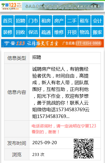 诚聘房产经纪人,有销售经验者优先,时间自由,高提成,新人有老人带,团队氛围好,互帮互助,正向利他,阳光下作业,欢迎有梦想,勇于挑战的你!联系人云姐微信电话15734583769云姐15734583769 【电话咨询时,请一定说明在伊春信息网看到的,谢谢!】 |