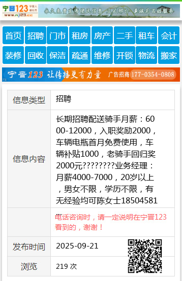 长期招聘配送骑手月薪:6000-12000,入职奖励2000,车辆电瓶首月免费使用,车辆补贴1000,老骑手回归奖2000元????????业务经理:月薪4000-7000,20岁以上,男女不限,学历不限,有无经验均可陈女士18504581458 【电话咨询时,请一定说明在伊春信息网看到的,谢谢!】 |