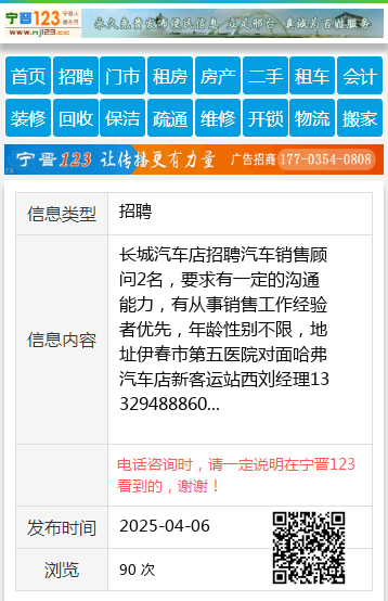 长城汽车店招聘汽车销售顾问2名,要求有一定的沟通能力,有从事销售工作经验者优先,年龄性别不限,地址伊春市第五医院对面哈弗汽车店新客运站西刘经理13329488860 【电话咨询时,请一定说明在伊春信息网看到的,谢谢!】 |