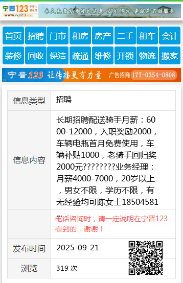 长期招聘配送骑手月薪:6000-12000,入职奖励2000,车辆电瓶首月免费使用,车辆补贴1000,老骑手回归奖2000元????????业务经理:月薪4000-7000,20岁以上,男女不限,学历不限,有无经验均可陈女士18504581458 【电话咨询时,请一定说明在伊春信息网看到的,谢谢!】 |