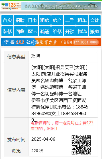 [太阳][太阳]招兵买马[太阳][太阳]新店开业招兵买马服务员两名刨肉师傅一名杂工师傅一名洗碗师傅一名碳工师傅一名切配师傅一名地址:伊春市伊美区河西工资面议待遇优厚联系电话:18845849609袁女士18845849609 【电话咨询时,请一定说明在伊春信息网看到的,谢谢!】 |