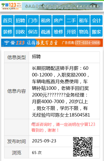 长期招聘配送骑手月薪:6000-12000,入职奖励2000,车辆电瓶首月免费使用,车辆补贴1000,老骑手回归奖2000元????????业务经理:月薪4000-7000,20岁以上,男女不限,学历不限,有无经验均可陈女士18504581458 【电话咨询时,请一定说明在伊春信息网看到的,谢谢!】 |