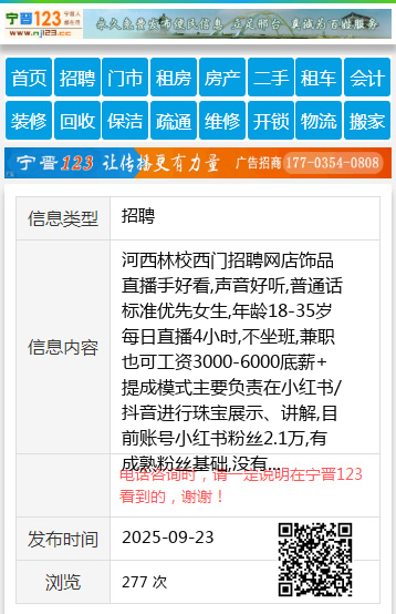 河西林校西门招聘网店饰品直播手好看,声音好听,普通话标准优先女生,年龄18-35岁每日直播4小时,不坐班,兼职也可工资3000-6000底薪+提成模式主要负责在小红书/抖音进行珠宝展示、讲解,目前账号小红书粉丝2.1万,有成熟粉丝基础,没有经验小白都可以,可以培训后上岗,但是要求做事细心且认真.金女士13945878558 【电话咨询时,请一定说明在伊春信息网看到的,谢谢!】 |