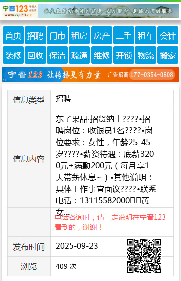 东子果品·招贤纳士????•招聘岗位:收银员1名????•岗位要求:女性,年龄25-45岁????•薪资待遇:底薪3200元+满勤200元(每月享1天带薪休息~)•其他说明:具体工作事宜面议????•联系电话:13115582000☎️黄女士13115582000 【电话咨询时,请一定说明在伊春信息网看到的,谢谢!】 |